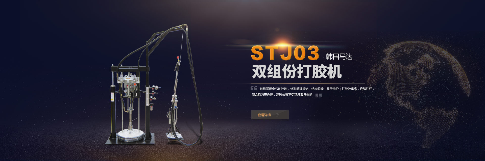 STJ06T型雙組份打膠機(jī)是我公司自行研制生產(chǎn)的一種全氣動(dòng)打膠機(jī)。這款設(shè)備是專(zhuān)門(mén)為中空玻璃打膠設(shè)計(jì)...